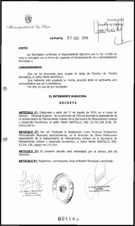 Unidad documental simple 2016_1149_GJC01 - Decreto n° 1149 de 2016, Garro,Julio Cesar