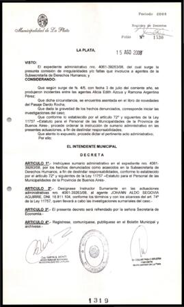 Unidad documental simple 2008_1319_OPB01 - Decreto n° 1319 de 2008, Bruera, Oscar Pablo