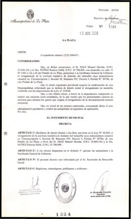 Unidad documental simple 2008_1324_OPB01 - Decreto n° 1324 de 2008, Bruera, Oscar Pablo