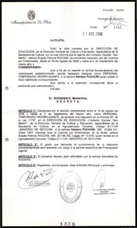 Unidad documental simple 2008_1336_OPB01 - Decreto n° 1336 de 2008, Bruera, Oscar Pablo