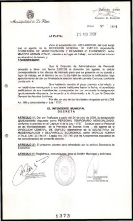 Unidad documental simple 2008_1373_OPB01 - Decreto n° 1373 de 2008, Bruera, Oscar Pablo
