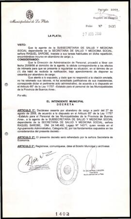 Unidad documental simple 2008_1402_OPB01 - Decreto n° 1402 de 2008, Bruera, Oscar Pablo
