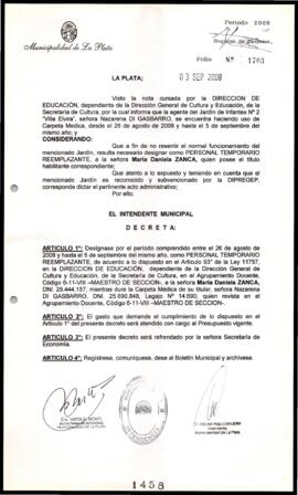 Unidad documental simple 2008_1458_OPB01 - Decreto n° 1458 de 2008, Bruera, Oscar Pablo