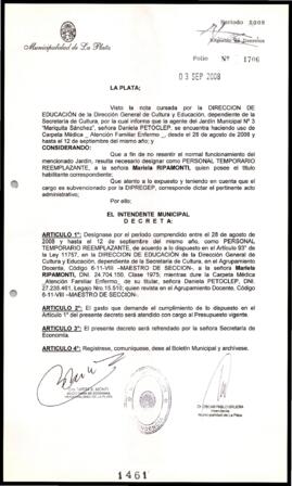 Unidad documental simple 2008_1461_OPB01 - Decreto n° 1461 de 2008, Bruera, Oscar Pablo