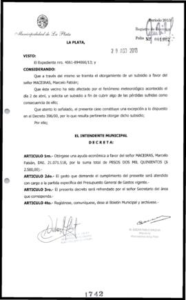 Unidad documental simple 2013_1742_OPB02 - Decreto n° 1742 de 2013, Bruera, Oscar Pablo