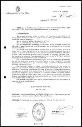 Unidad documental simple 2009_2018_OPB01 - Decreto n° 2018 de 2009, Bruera, Oscar Pablo