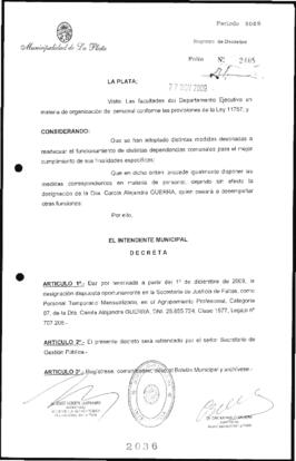 Unidad documental simple 2009_2036_OPB01 - Decreto n° 2036 de 2009, Bruera, Oscar Pablo