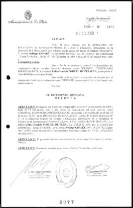 Unidad documental simple 2009_2077_OPB01 - Decreto n° 2077 de 2009, Bruera, Oscar Pablo