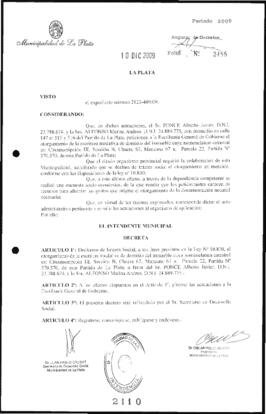 Unidad documental simple 2009_2110_OPB01 - Decreto n° 2110 de 2009, Bruera, Oscar Pablo