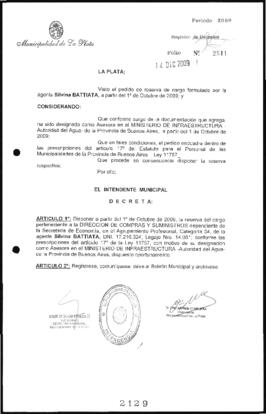 Unidad documental simple 2009_2129_OPB01 - Decreto n° 2129 de 2009, Bruera, Oscar Pablo