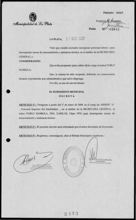 Unidad documental simple 2007_2173_OPB01 - Decreto n° 2173 de 2007, Bruera, Oscar Pablo