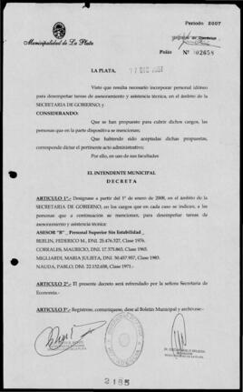 Unidad documental simple 2007_2185_OPB01 - Decreto n° 2185 de 2007, Bruera, Oscar Pablo