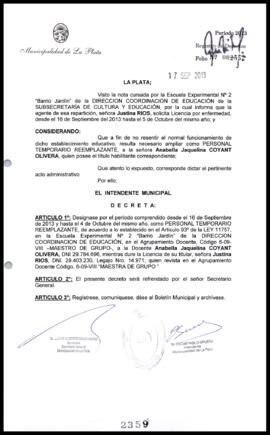 Unidad documental simple 2013_2359_OPB02 - Decreto n° 2359 de 2013, Bruera, Oscar Pablo