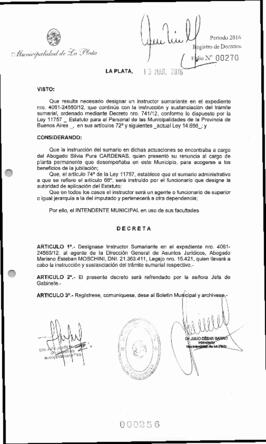 Unidad documental simple 2016_0256_GJC01 - Decreto n° 256 de 2016, Garro,Julio Cesar