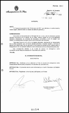 Declárase a la ciudad de La Plata en estado de emergencia como consecuencia del temporal producido el 16 de enero del corriente año.-