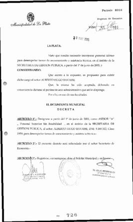 Unidad documental simple 2005_0726_JCA04 - Decreto n° 726 de 2005, Alak, Julio Cesar