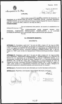 Unidad documental simple 2005_0727_JCA04 - Decreto n° 727 de 2005, Alak, Julio Cesar