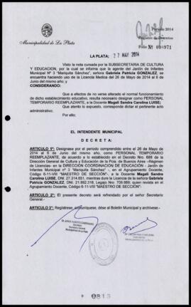 Unidad documental simple 2014_0813_OPB02 - Decreto n° 813 de 2014, Bruera, Oscar Pablo