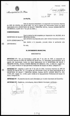 Unidad documental simple 2005_0874_JCA04 - Decreto n° 874 de 2005, Alak, Julio Cesar
