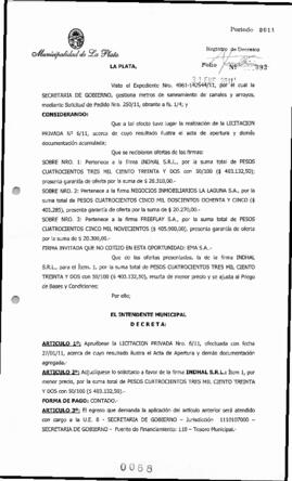 Apruébese la LICITACION PRIVADA Nro. 6/11, efectuada con fecha 27/01/11, acerca de cuyo resultado ilustra el Acta de Apertura y demás documentación agregada.-