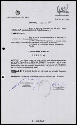 Unidad documental simple 2014_0904_OPB02 - Decreto n° 904 de 2014, Bruera, Oscar Pablo