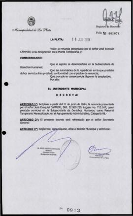 Unidad documental simple 2014_0912_OPB02 - Decreto n° 912 de 2014, Bruera, Oscar Pablo