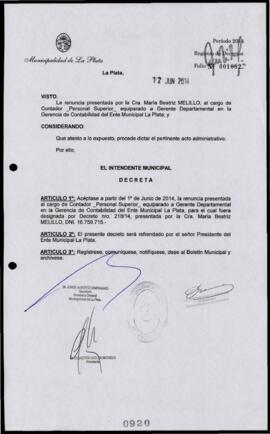 Unidad documental simple 2014_0920_OPB02 - Decreto n° 920 de 2014, Bruera, Oscar Pablo