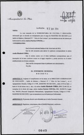 Unidad documental simple 2014_0942_OPB02 - Decreto n° 942 de 2014, Bruera, Oscar Pablo