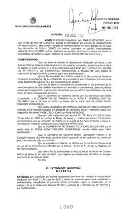 Expte. 4061-1149194-20. Adjudica Compra Directa Excepcional Nº 776 por la que se solicita la contratación del servicio de mantenimiento del espacio público.