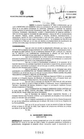 Expte. 4061-1149395-20. Adjudica Compra Directa Excepcional Nº 760 por la que se solicita la contratación del servicio de mantenimiento diario fitosanitario en V. Elvira.
