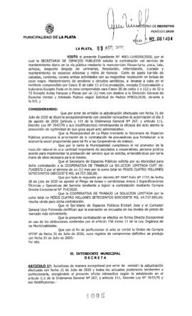 Expte. 4061-1149399-20. Adjudica Compra Directa Excepcional Nº 764-20 por la que se solicita la contratación del servicio de mantenimiento diario en la vía pública en Casco II.