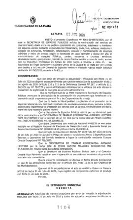 Expte. 4061-1148978-20. Adjudica Compra Directa Excepcional Nº 766-20 por la que se solicita la contratación del servicio de mantenimiento diairo en la vía pública en A. Etcheverry y L. Olmos.