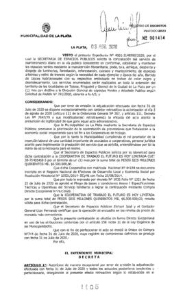 Expte. 4061-1148980-20. Adjudica Compra Directa Excepcional Nº 767-20 por la que se solicita la contratación del servicio de mantenimiento diairo en la vía pública en Tolosa Ringuelet y Gonnet.