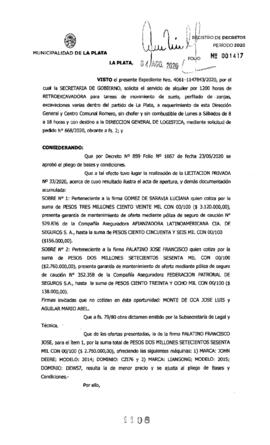 Expte. 4061-1147843-20. Aprueba. Adjudica Licitación Privada Nº 33-20 por la que se solicita servicio de alquiler de retroexcavadora.