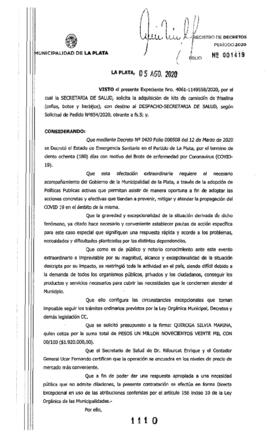 Expte. 4061-1149558-20. Adjudica Compra Directa Excepcional por la que se solicita la adquisición de kits de camisolin.
