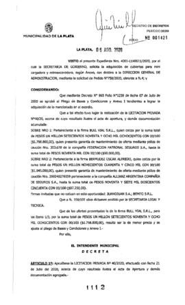Expte. 4061-1148611-20. Aprueba. Adjudica Licitación Privada Nº 40-20 por la que se solicita la adquisición de cubiertas.