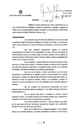 Expte. 4061-1149919-20. Adjudica Compra Directa Excepcional por la que se gestiona la adquisición de ataúdes y angelitos.
