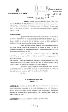 Expte. 4061-1148252-20. Amplía la contratación del servicio de mantenimiento e higiene de los Centros de Salud.