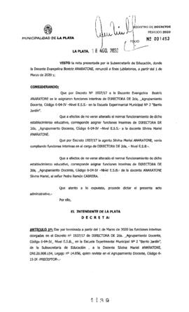 Da por terminada funciones interinas Directora de 2da. Sra. ANARATONE.