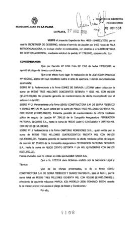 Expte. 4061-1148823-20. Aprueba. Adjudica Licitación Privada Nº 43-20 por la que se solicita el alquiler de retroexcavadora.