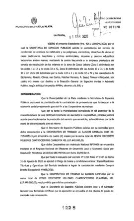Expte. 4061-1150946-20. Adjudica Compra Directa Excepcional Nº 898 recolección de residuos no habituales y no peligrosos en Casco urbano Zona I Zona II Zona III y las localidades de Etcheverry.