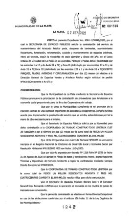 Expte. 4061-1150948-20. Adjudica Compra Directa Excepcional Nº 900 por la que se solicita la contratación del servicio de mantenimiento de arbolado público en Casco Urbano.