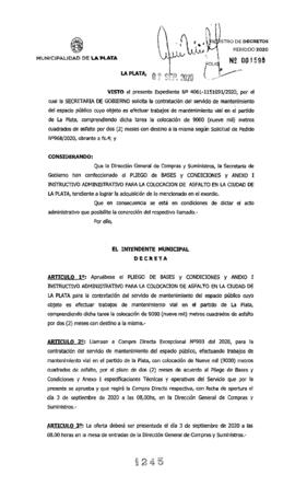 Expte. 4061-1151091-20. Aprueba Pliego. Llama a Compra Directa Excepcional Nº 903 por la que se solicita la contratación del servicio de mantenimientodel espacio público.