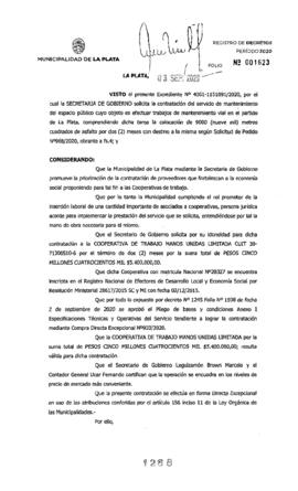 Expte. 4061-1151091-20. Adjudica Compra Directa Excepcional Nº 903 por la que se solicita la contratación del servicio de mantenimiento del espacio público.