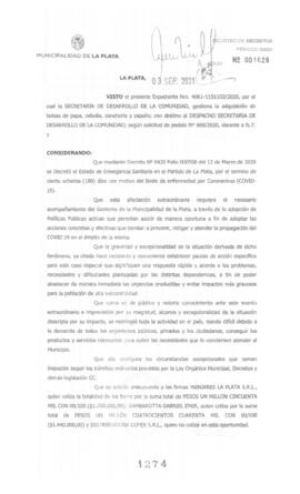 Expte. 4061-1151102-20. Adjudica Compra Directa Excepcional por la que se gestiona la adquisición de bolsas de papa y otros.
