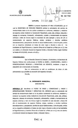 Expte. 4061-1152100-20. Aprueba Pliego. Llama a Compra Directa Excepcional Nº 949-20 por la que se solicita la contratación del servicio de mantenimiento diario en la via pública en A. Etcheve.