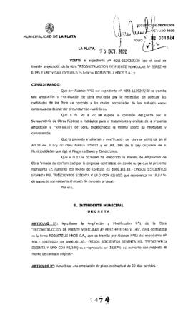 Expte. 4061-1139255-20. Aprueba Ampliación y Modificación nº1 de la Obra Reconstrucción de puente vehicular AºPerez 49 e 145 y 146.