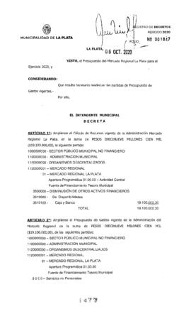 Amplía el Cálculo de Recursos vigente de la Adminsitración del Mercado Regional La Plata.