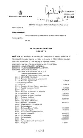 Amplía las partidas del Presupuesto de Gastos vigente de la Administración del Mercado Regional La Plata.