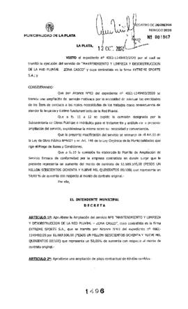 Expte. 4061-1149493-20. Aprueba Ampliación del servicio Nº 1 Mantenimiento y Limpieza y Desobstrucción de la Red Pluvial - Zona Casco.